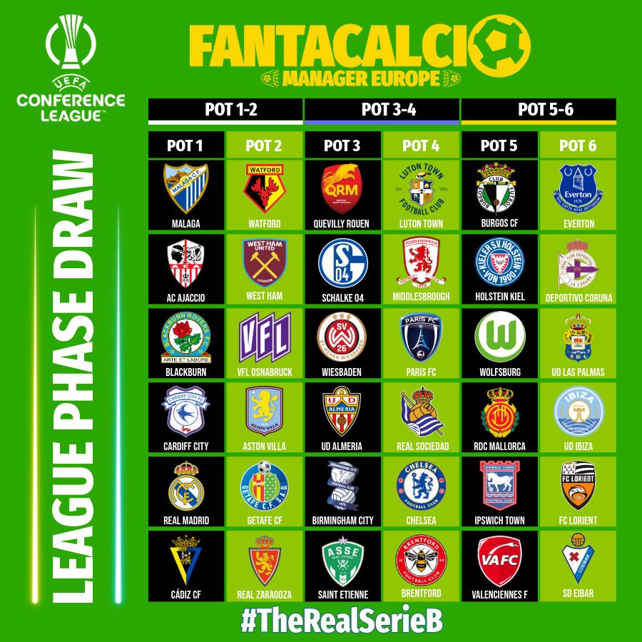 SerieB oggi torna in campo la Serie B ed inizia la fase a girone unico della Conference League questi i pot con i club qualificati. Il calendario delle 6 partite è disponibile su Fantaclub.