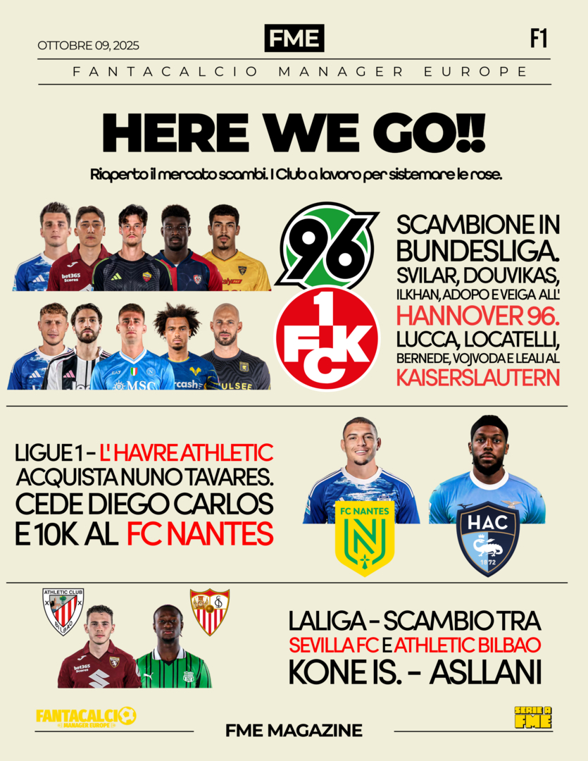 Purtroppo abbiamo perso un'altro pezzo che non posso sostituire. Ora giochiamo in 11 in tutte le competizioni. Ma alcuni calendari non si possono modificare. Ringrazio tutti anche se l'unico contatto VIVO è gladiatorman. Ma và bene lo stesso.