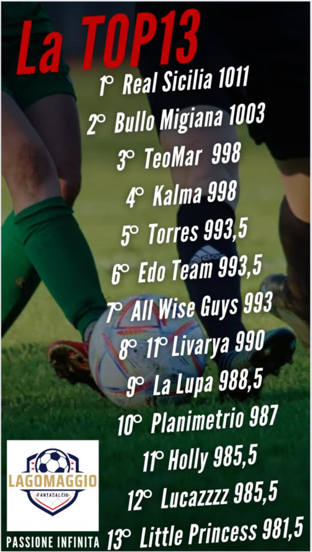 Ricalcolati i risultati della giornata 13 in seguito al referto del giudice sportivo.