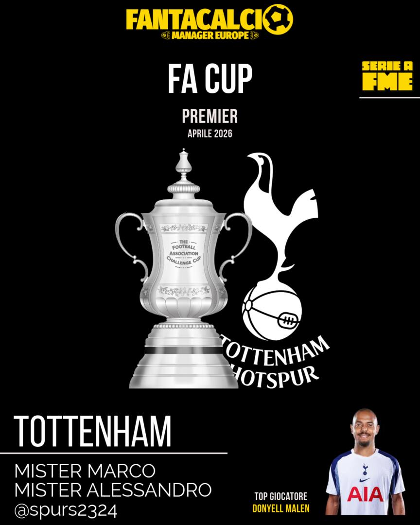 SerieA Complimenti al Tottenham di Marco & Ale che mettono in bacheca un altro trofeo prestigioso la FA CUP!! Tanta gloria + 45 euro