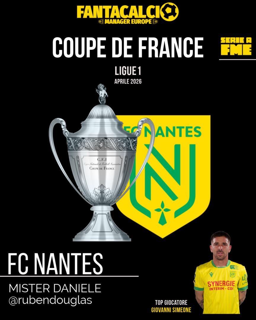 SerieA ci era andato vicinissimo l'anno scorso perdendo in finale! Primo obbiettivo raggiunto per il Nantes di Daniele che porta a casa la Coupe de France! Complimenti + 45 euro