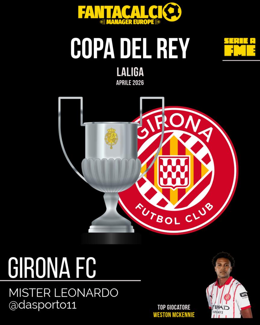 SerieA La Copa del Rey non si muove dalla Catalogna, il Girona di Leonardo per la seconda volta si aggiudica il titolo! Complimenti! In redazione ancora chi chiediamo come abbia fatto...misteri del Fanta! +45 euro