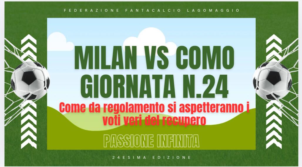 IMPORTANTE!! Leghe HASTA LA VISTA BABY / BRASILIANA / THE CONTRARY TOP-PLAYER - partita della 24a giornata MILAN-COMO - vi ricordo che nelle mie tre leghe di serie A SI RECUPERERANNO I VOTI DELLA PARTITA MILAN-COMO che è stata rinviata al mercoledì 18 febbraio (prima della 26a giornata).
