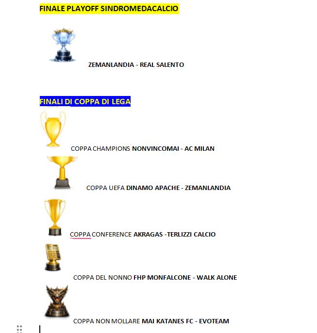 Ringrazio tutti i partecipanti a questa lega. Se vi farà piacere , siete tutti invitati a partecipare il prossimo anno. Pietro Alias Gladiatorman