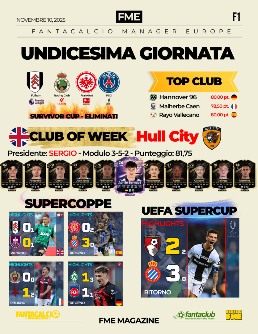 SerieA Risultati tornei. Club Team of the Week l'HULL CITY del Presidente +5k 👏🏻. Top Club di giornata delle altre leghe +2k.