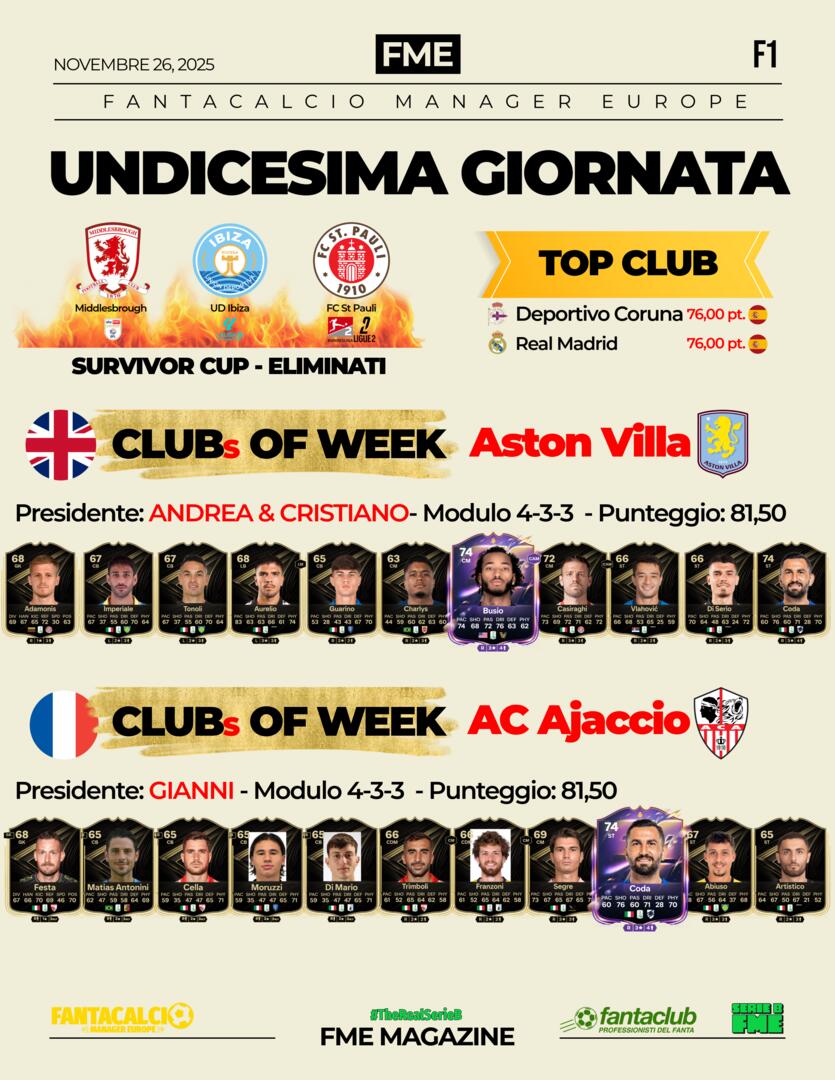 SerieB Risultati tornei. 2 Club Team of the Week l'Aston Villa di Andrea e Cristiano e l'Ajaccio di Gianni +5k šš». Top Club di giornata delleĀ altreĀ legheĀ +2k.