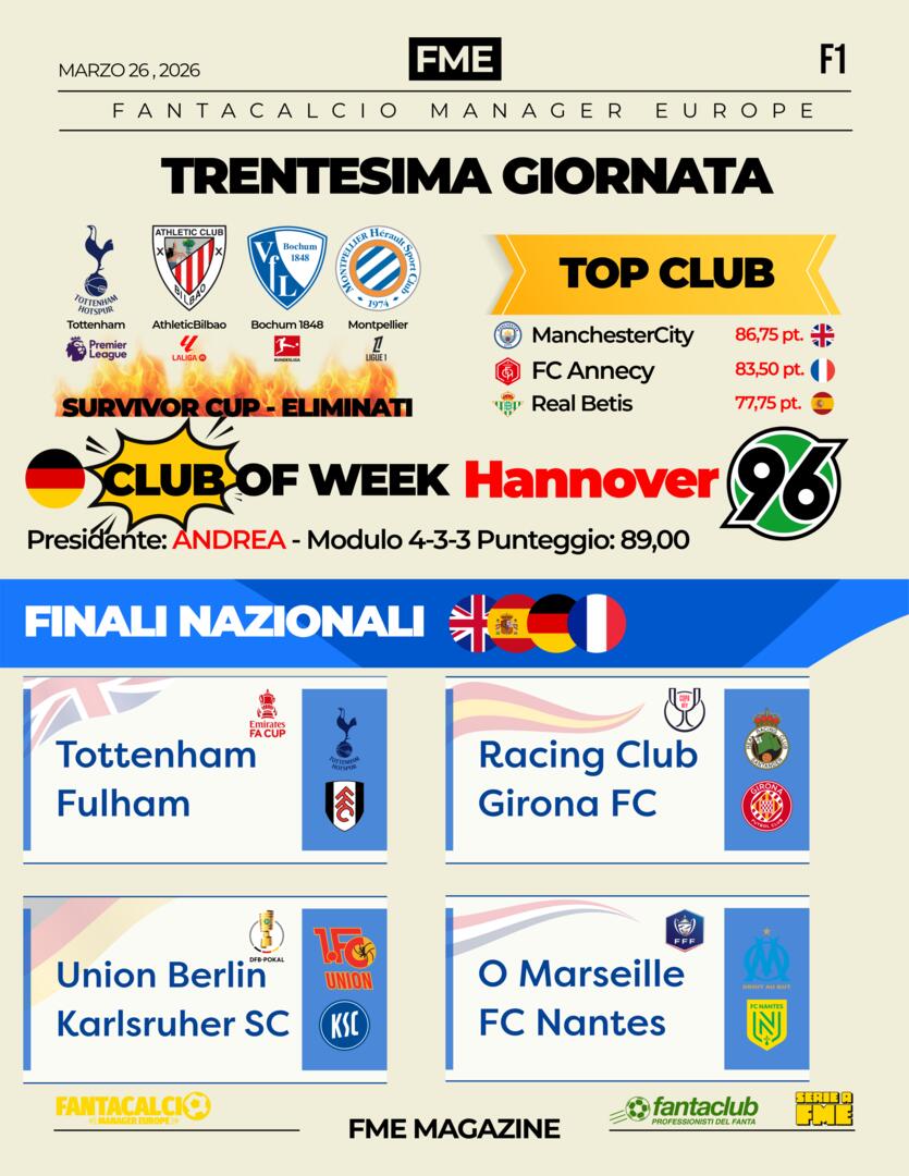 SerieA Risultati tornei. Club Team of the Week l'HANNOVER di Andrea +5k 👏🏻. Top Club di giornata delle altre leghe +2k.