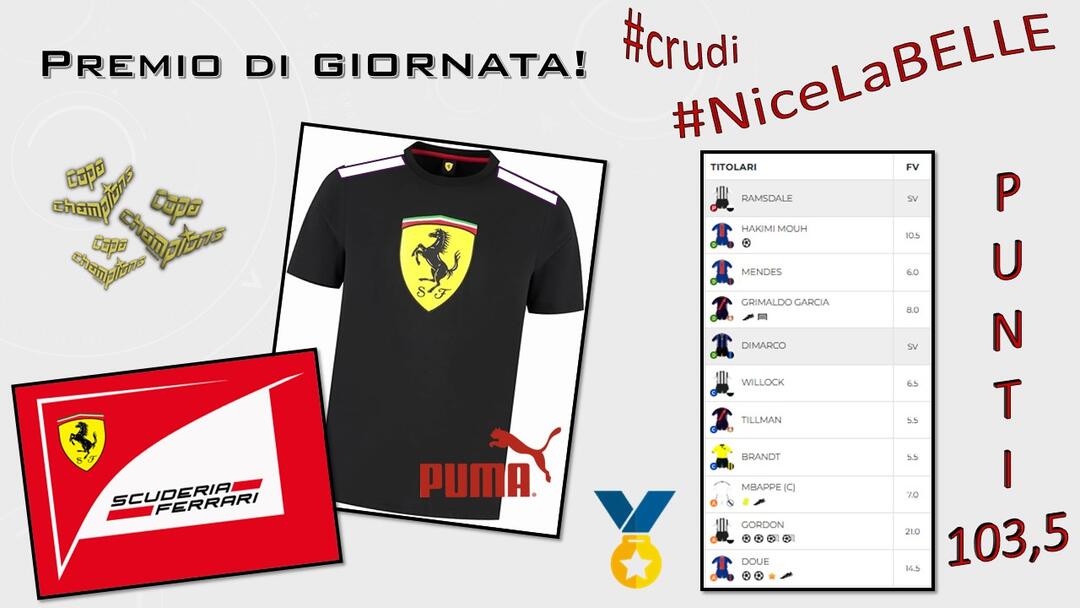 Complimenti a #crudi, che con la sua squadra #NiceLaBELLE ha totalizzato il miglior punteggio di giornata #9, realizzando ben 103,5 punti!!