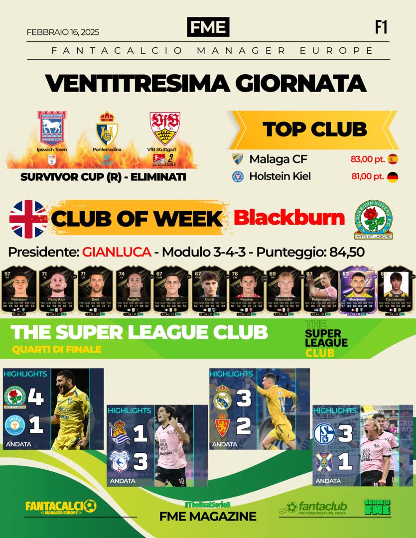 SerieB Risultati tornei. Club Team of the Week il Blackburn di Gianluca +5k 👏🏻. Top Club di giornata delle altre leghe +2k.