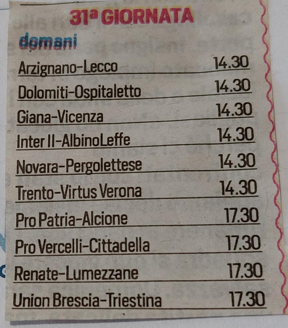 Ricalcolati i risultati della giornata 30 di Serie C Gir C per le leghe che usano Serie C Gir C.