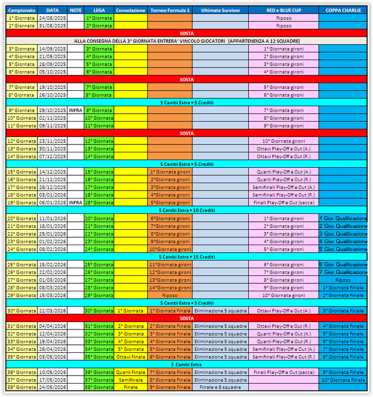 CALENDARIO COMPETIZIONI DELLA STAGIONE 2025 / 2026