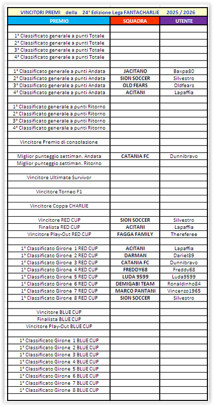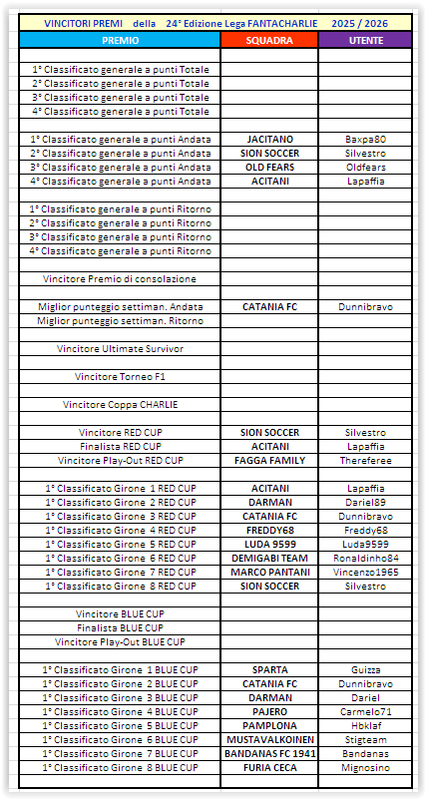 ELENCO DEI PARTECIPANTI AL FANTACHARLIE 2025