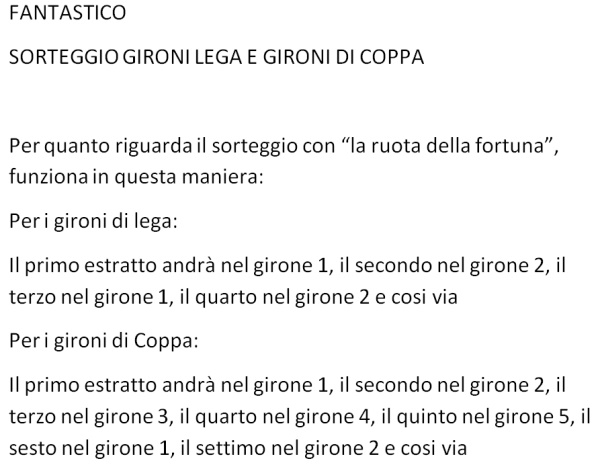 Vedi di piùINDICAZIONI PER SORTEGGIO GIRONI E COPPA