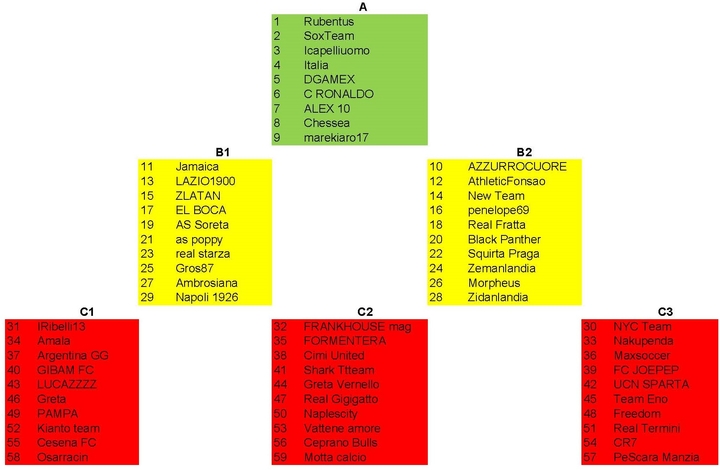 La prossima giornata partirĂ il campionato di apertura. Le serie saranno suddivise secondo la foto allegata. A breve saranno create le serie ed i calendari nella sezione tornei.