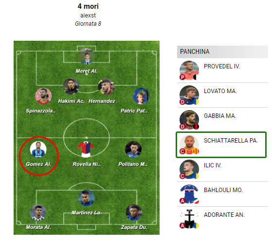 La squadra 4mori ha schierato Gomez nonostante la squalifica. Abbiamo sostituito il giocatore seguendo il regolamento di lega.