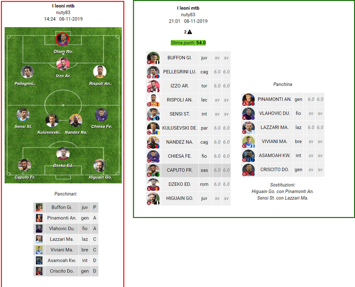 La squadra I leoni mtb ha schierato Olsen nonostante la squalifica. Abbiamo rimpiazzato il giocatore seguendo il regolamento di lega.