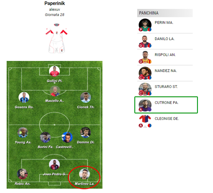 La squadra Paperinik ha schierato Lautaro Martinez nonostante la squalifica. Abbiamo rimpiazzato il giocatore seguendo il regolamento di lega.