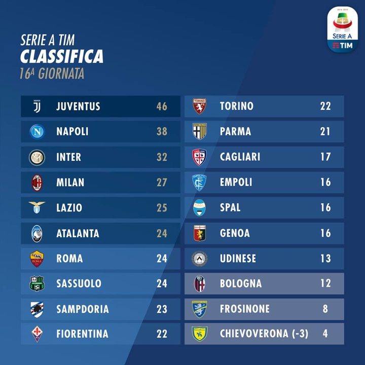 LIMITE CONSEGNA FORMAZIONI 17° GIORNATA SABATO 22 DICEMBRE ORE 12.30 ANTICIPO LAZIO - CAGLIARI