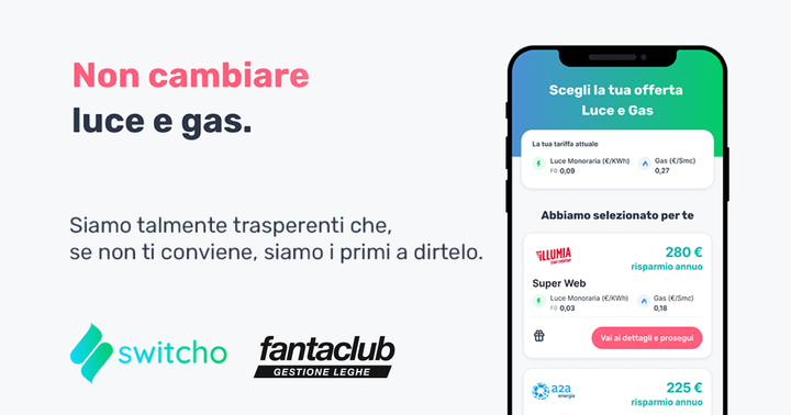 Prova subito Switcho per farti consigliare nuove proposte di risparmio sulle tue spese fisse.