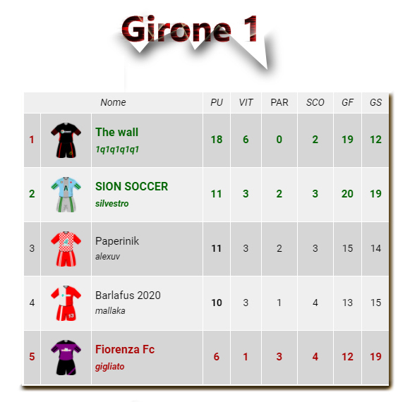 Per questo girone abbiamo avuto problemi di grafica....sicché niente ribaltoni :O)